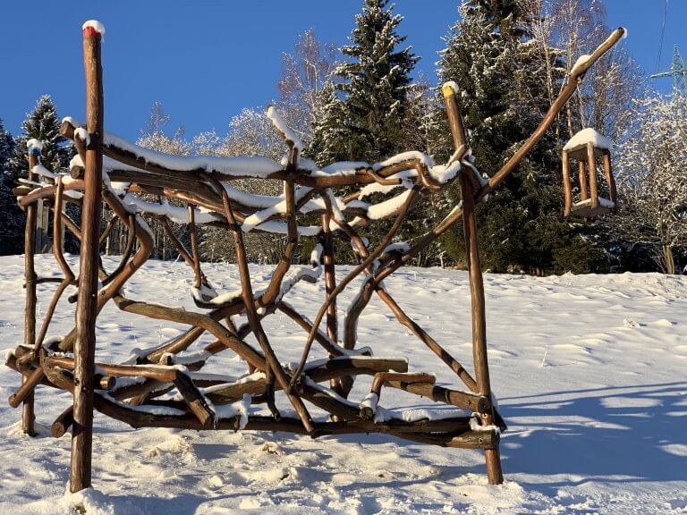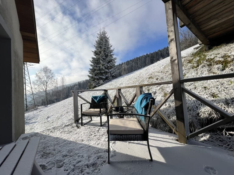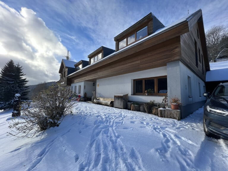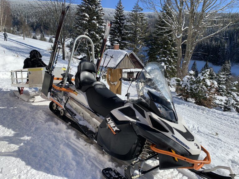Hosty vozíme za poplatek skútrem ke sjezdovce Kostel – 2 km od nás do kopečka – (2 dospělí + 2-3 děti), sousední chata Ťapka či hotel Javor pak rolbou (8 osob)